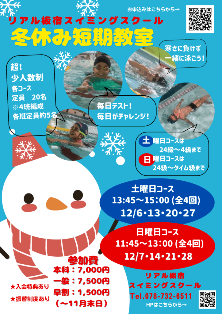 リアル板宿スイミングスクールの冬休み短期水泳教室は?